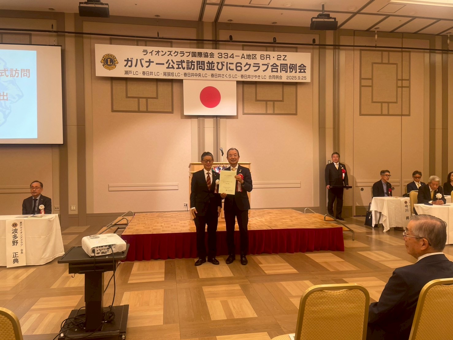| ■ ガバナー公式訪問並びに2Z6クラブ合同例会 | 2025/9/25 | 9月25日(木) ホテルプラザ勝川けやきの間にて地区ガバナーL速水清朗の訪問並びに6R2Z合同例会が開催されました。わがクラブは今回ホストクラブでもあり多くの会員が出席していただきました。他のクラブも大勢の参加者が集まり和気あいあいと楽しい活気のある公式訪問並びに合同例会となりました。